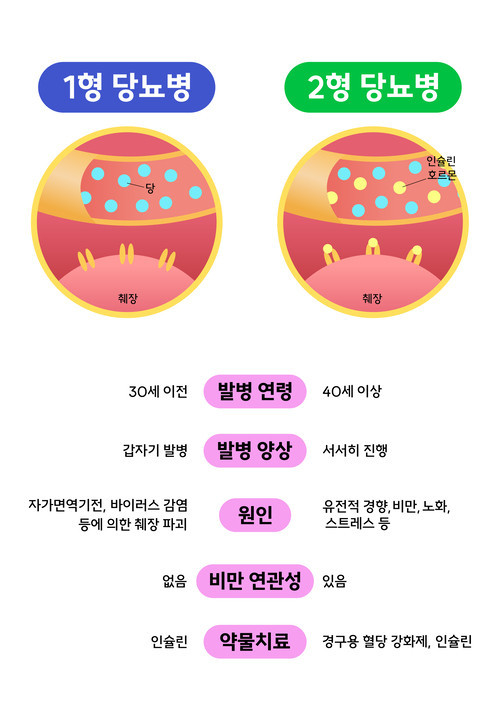 제1형 당뇨와 제2형 당뇨의 원인과 주요 차이점